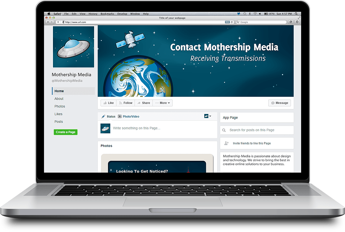 Mothership Media sought to establish its brand identity by commissioning a logo design and social media branding for their new venture.
